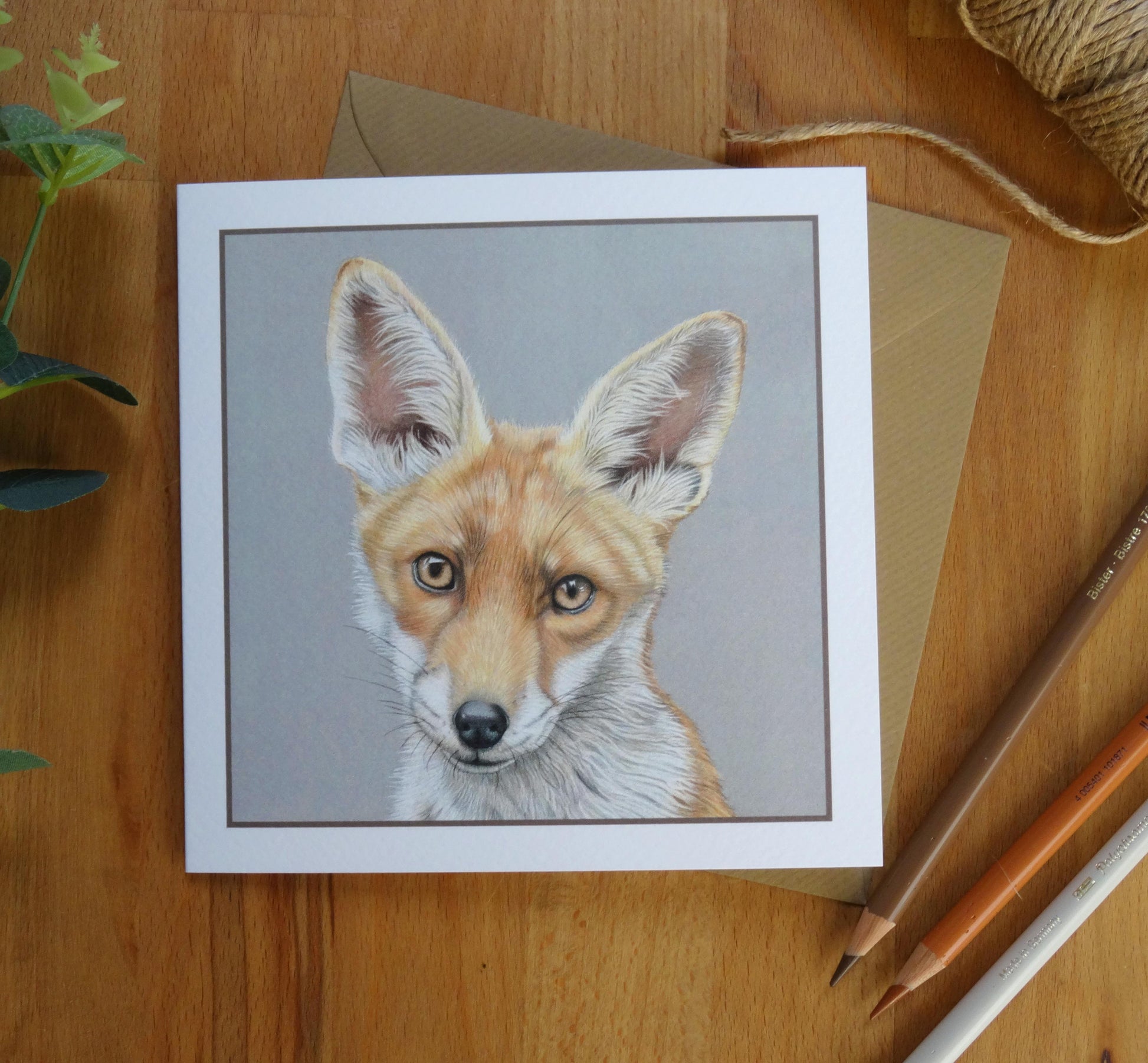 This fox greetings card features my original pencil drawing of a fox cub, capturing the playful charm and bright-eyed curiosity of this much-loved woodland animal. Professionally printed on premium-quality card stock, the artwork highlights the fine fur detail and character of one of Britain’s most iconic countryside creatures.