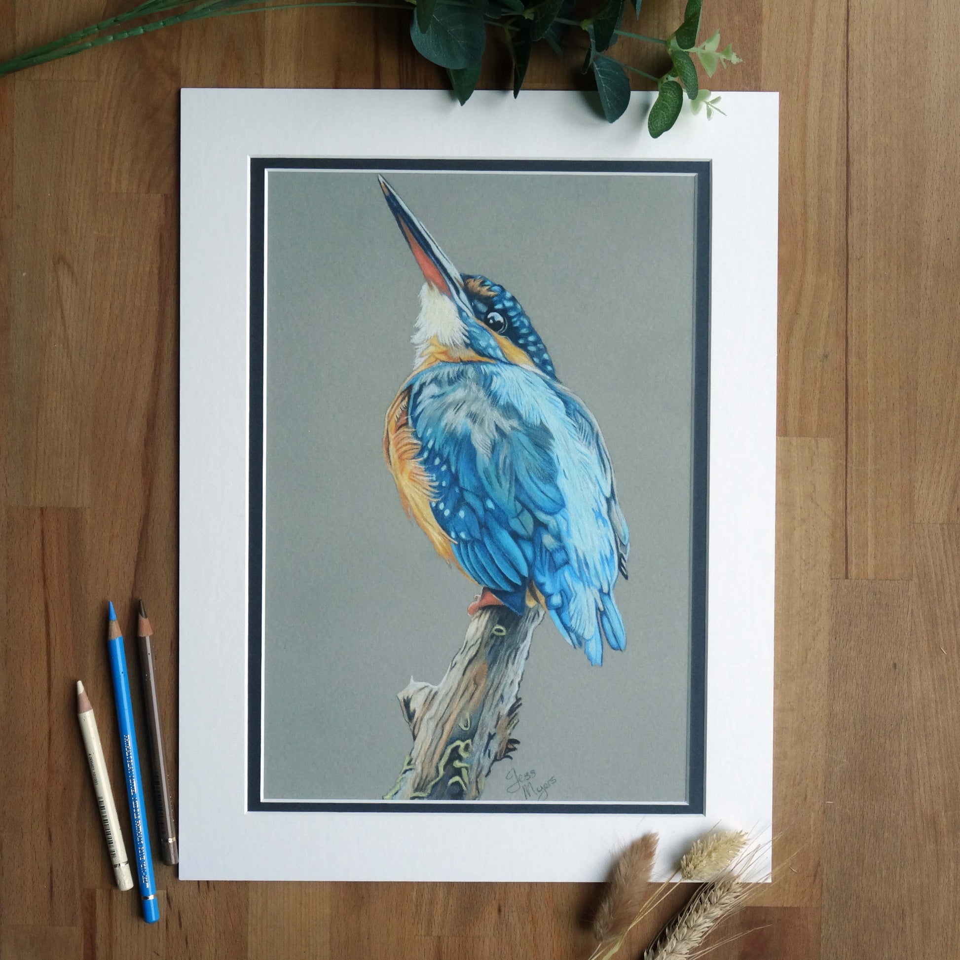 Perfect for bird lovers, countryside homes, and wildlife art collectors, this large-format giclée print preserves every fine detail of the original pencil artwork. A striking addition to any collection of British bird art, it brings the beauty and charm of the kingfisher into your home.