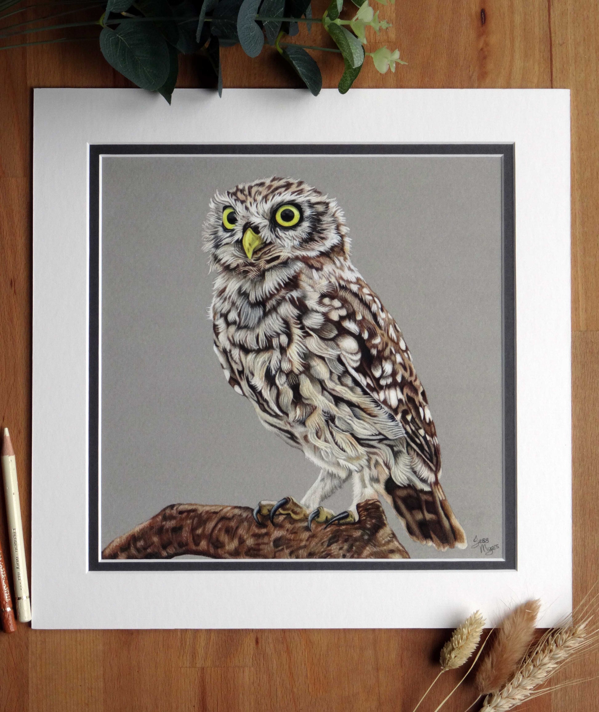 This detailed little owl drawing has been reproduced as a premium giclée fine art print, taken from my original pencil artwork. Printed on archival paper with museum-quality inks, the piece captures the sharp gaze, intricate feather textures, and character of the British little owl, a much-loved countryside bird.