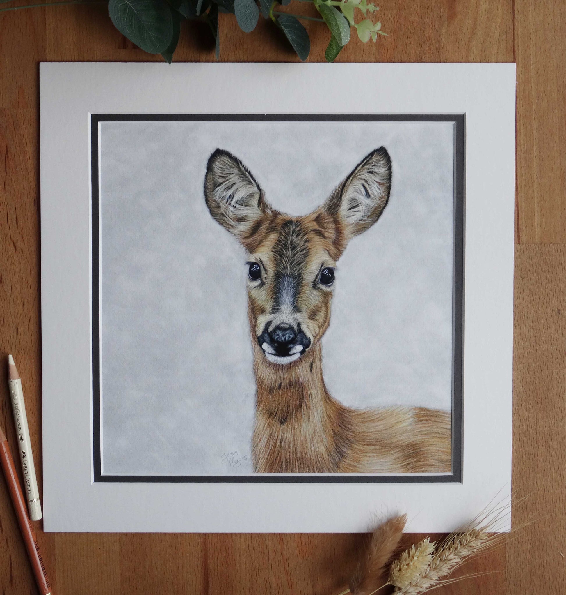 This detailed roe deer drawing has been faithfully reproduced as a high-quality giclée fine art print, taken from my original pencil artwork. Printed on archival paper with lightfast inks, this piece captures the elegance and character of the British roe deer, making it a striking addition to any home or collection of wildlife art.
