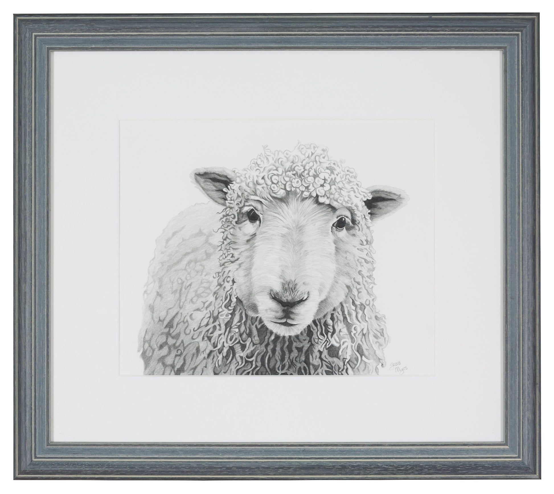 This inquisitive sheep appears to be particularly friendly as it keeps a watchful eye on you. She was created solely in the medium of graphite pencils and is supplied ready to hang in the mount and frame shown. Overall sizing is approximately 44.5cm wide x 40cm high.