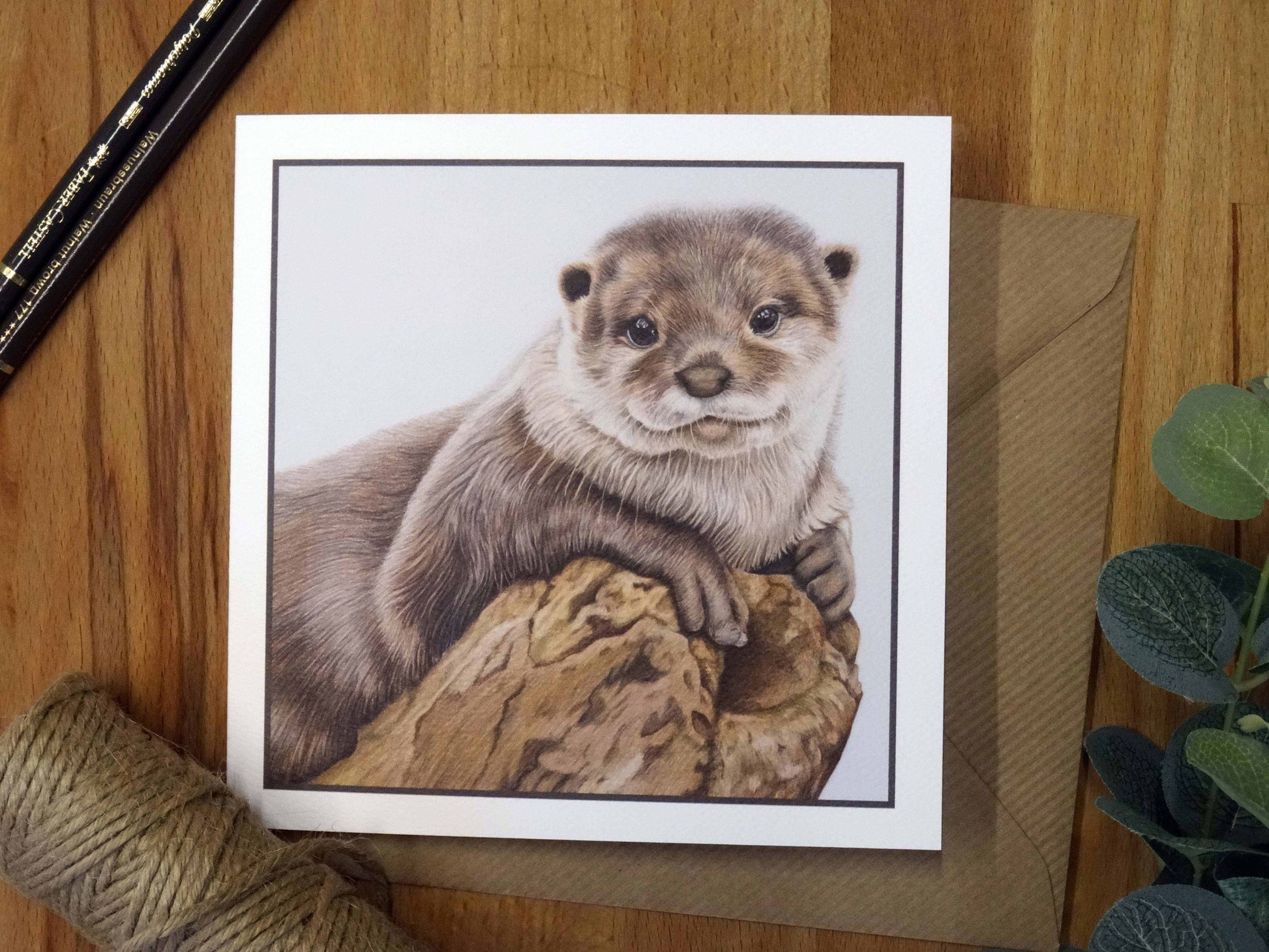 This otter greetings card features my original pencil drawing “The Watchman”, inspired by the playful spirit and watchful charm of one of Britain’s most loved river mammals. Professionally printed on premium-quality card stock, the artwork captures the otter’s sleek fur, intelligent expression, and natural beauty in fine detail.