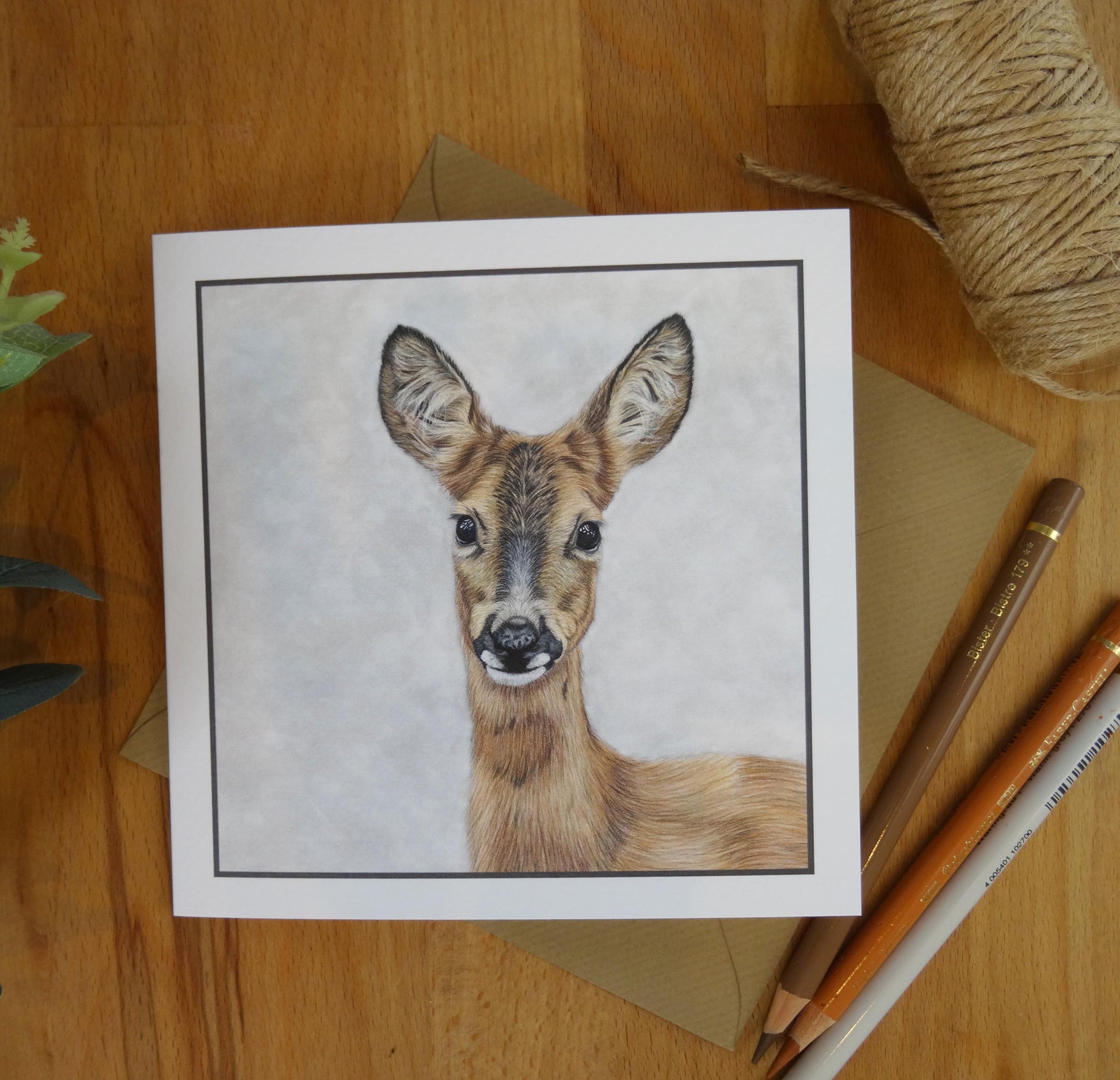 This roe deer greetings card features my original pencil drawing of a roe deer, a graceful and iconic creature of the British countryside. Professionally printed on high-quality card stock, the artwork captures the deer’s alert expression, fine fur detail, and quiet beauty with stunning realism.